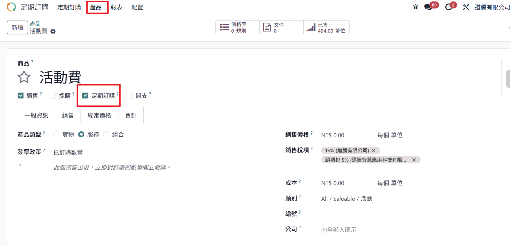 - 循環週期:用來決定「這筆訂購多久會自動開一次發票」。